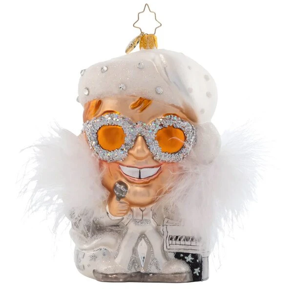 Add your own Rocket Man to your collection with this Elton John Rock Star Ornament. This 2023 Christopher Radko glass ornament measures 5 inches in height.