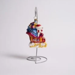 Santa has a foster friend tucked into his sack, and a dog bone biscuit to surprise him with a snack. This 2023 Christopher Radko glass ornament measures 6 inches.