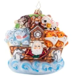 Noah and the ark is a story we all have heard, the animals loaded two by two including the birds. This 2023 Christopher Radko glass ornament measures 5 inches in height.