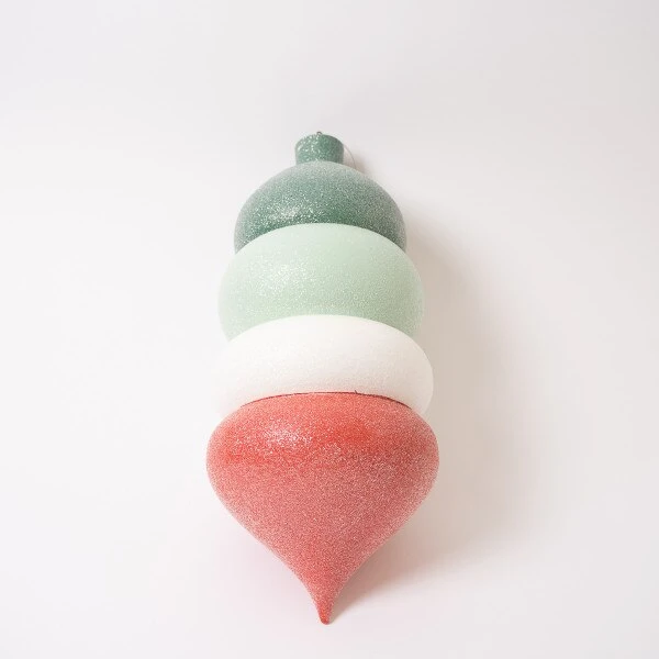 Frosted in sugar like glitter, with all the sweet colors of Christmas, this sparkling plastic ornament will make an amazing addition to your holiday decor or arrangement! Measuring 22 inches in length and 8 inches wide, this festive piece would look amazing as a filler for a large tree or hanging form and arch way.
