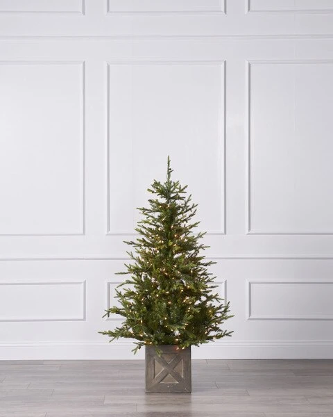 5FT Fieldstone Spruce in Pot has a limited product warranty of 1 year for the lights and 5 years for the structure. This tree features 386 tips and 250 clear Stay-Lit lights. Tree diameter is 37″
