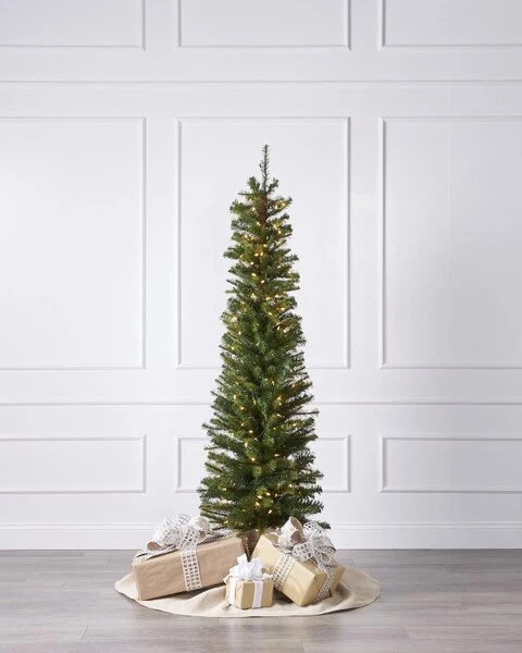 - 6.5ft Darwin Pencil Christmas tree features 396 tips and measures 22″ in diameter.