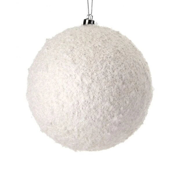 A snowball ornament that can be used in any wintry themed decor that has a frosted texture giving it a realistic look. Measures 6 inches in diameter and made of polyester and styrofoam. Â