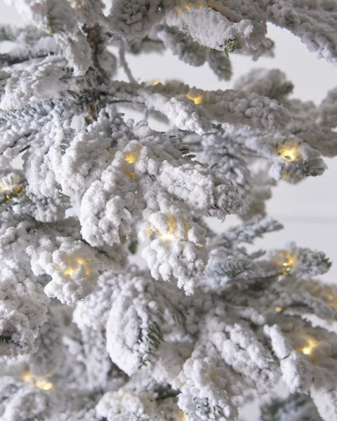 7.5ft Snowy Flocked Slim Balsam Pine With G40 And LED Lights