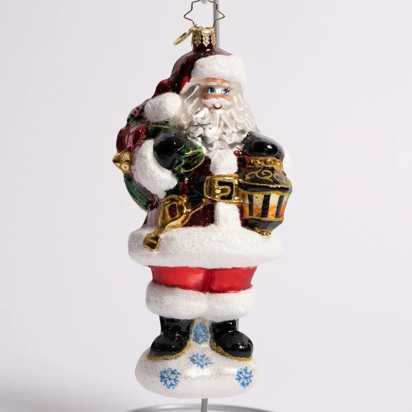 Santa will guide you all through the night, with lantern in hand and shining bright. This Christopher Radko glass ornament measures 6.5 inches in height.