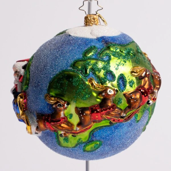 All Santa wants for Christmas is Peace On Earth. For the 2021 season, Christopher Radko presents this beautiful glitter covered glass globe of the world. Santa rides in his sleigh with his reindeer companions, bringing Peace On Earth. This amazing ornament measures 5 x 5 x 5 inches.