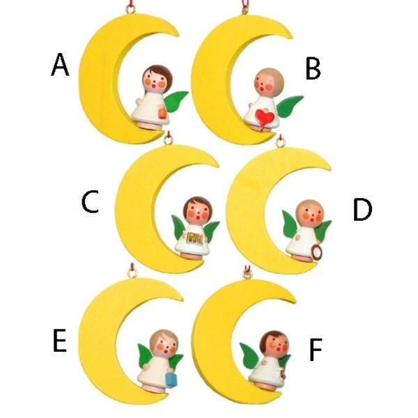 Christian Ulbricht hanging ornament – Angels standing on a moon. Choose from 6 versions- made in Germany. Each sold separately.