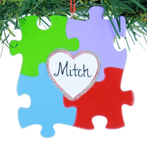 Puzzle piece personalizable ornament for that person who is passionate about Autism Awareness. This ornament can be for anyone who loves puzzles as well. Made of quality resin and measures 3in H x .5in W x 3in L.