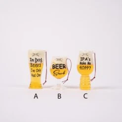 This assortment features 3 different shaped beer glasses with different sayings on them. Version A says “In dog beers, I’ve only had one”, version B says “Beer Snob”, and version C says “IPA’s make me hoppy”. Each sold separately and measure 3.75 inches in height.