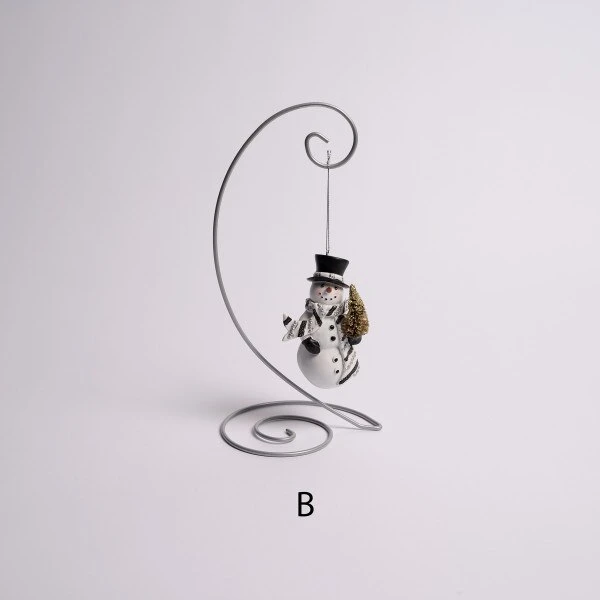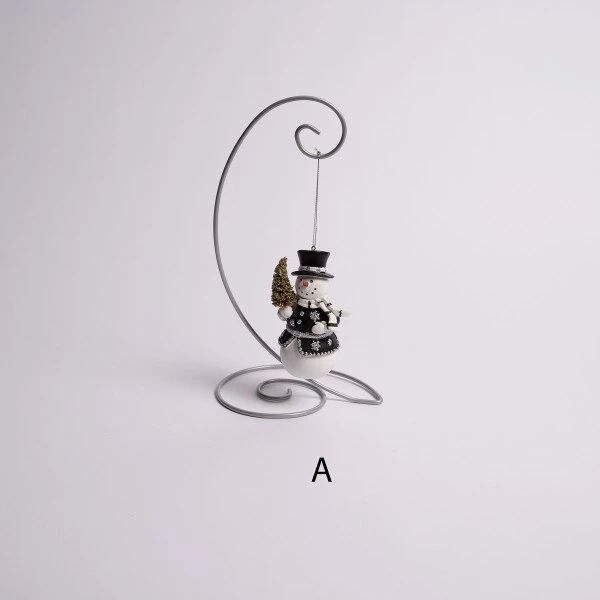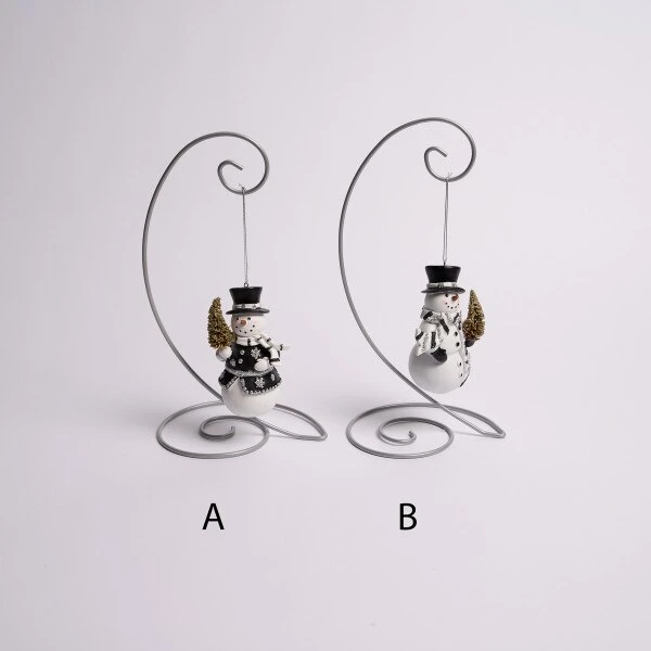 This assortment includes a snowman with a black, white and clear gemstone scarf and a snowman wearing a black coat decorated with silver glittered snowflakes and clear gemstones. Each snowman is holding a miniature gold Christmas tree.