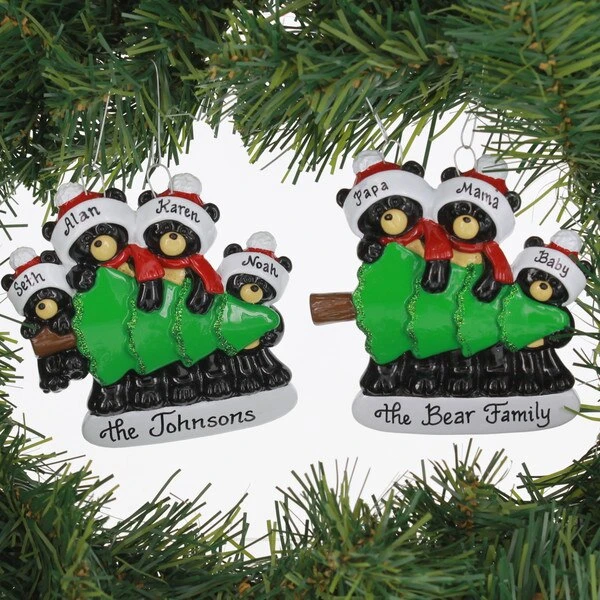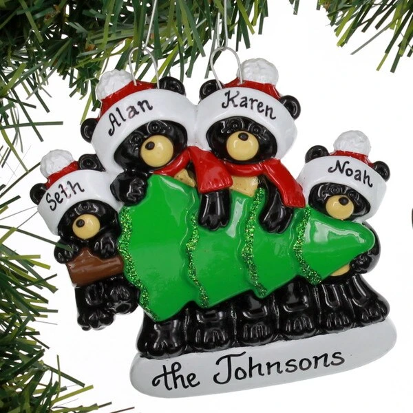 Sometimes it takes the whole Black Bear family of 4 to find the perfect Christmas tree. This ornament can be personalized and measures 4 inches in height.