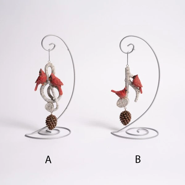 There are two different shaped music notes in this assortment, both have cardinals on them. This ornament measures 7.5 inches in height. Each sold separately.