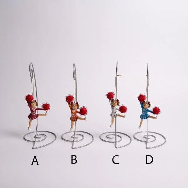 This assortment features 4 different cheerleaders. One in red, one in orange, one in white, and one in blue. Choose your favorite or collect all four. Each sold separately.