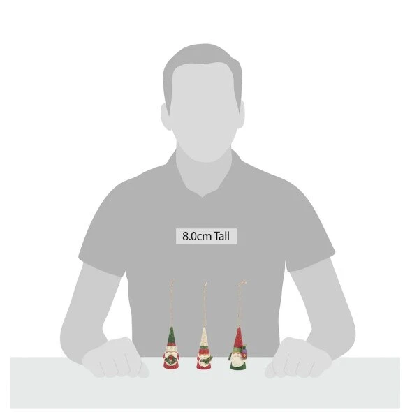 An assortment of 3 different gnome ornaments. Pick your favorite or collect all 3. These ornaments measure 3.35 inches in height and are each sold separately.