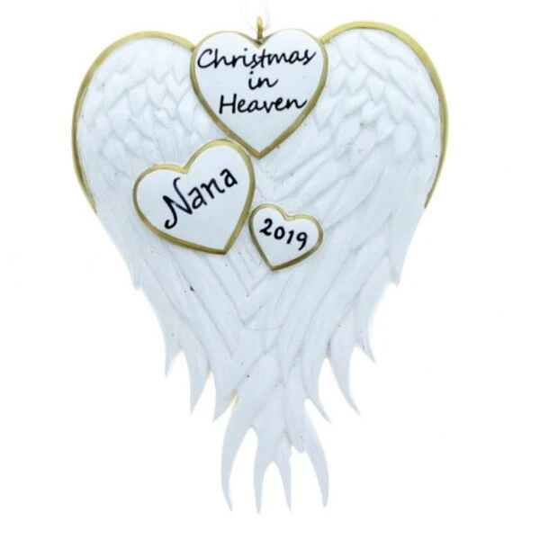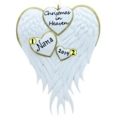 Christmas In Heaven is an ornament that is very dear to all of us. Personalizable ornament has two labels; one for a name and the other for a year. Measures approximately 4″H x 4″W and made of quality resin.
