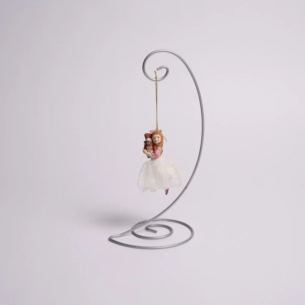 The Nutcracker Suite features Clara doing ballet while holding a nutcracker in her arms. This ornament measures 4 inches in height.