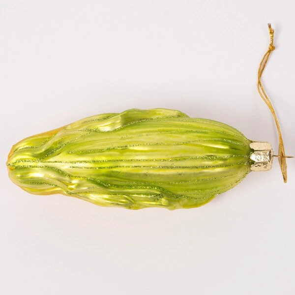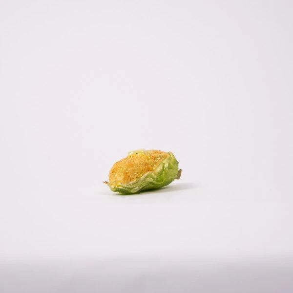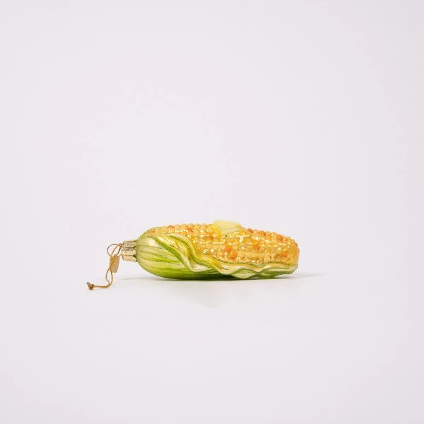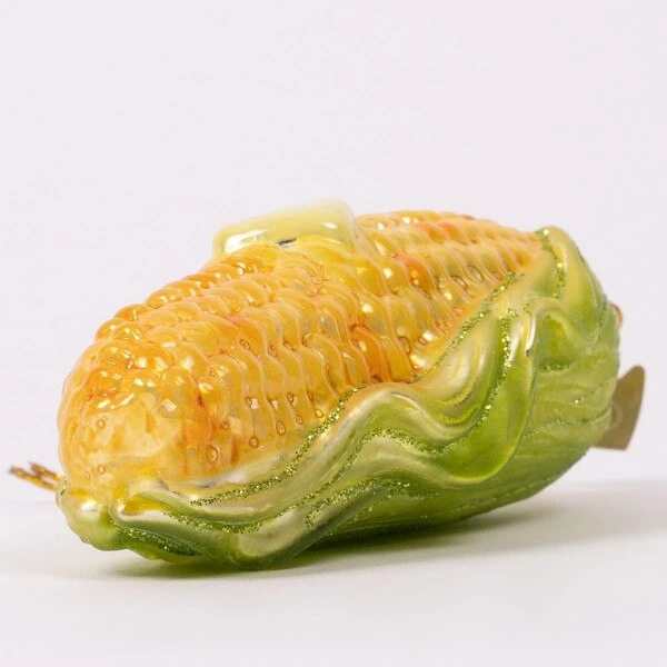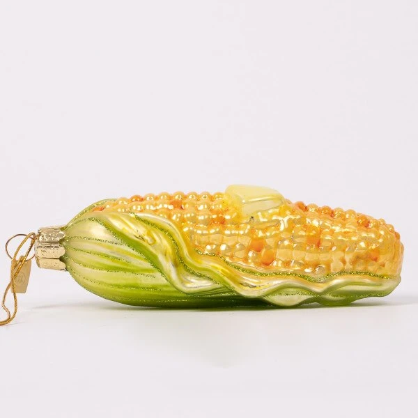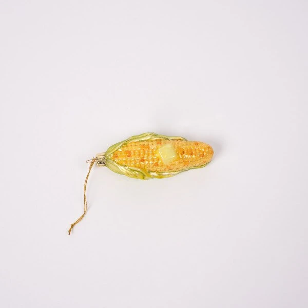 This ornament features a piece of corn on the cob with melting butter on it. It measures 4.125 inches in height.