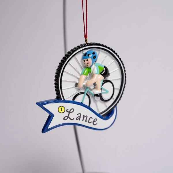 This ornament is perfect for the cyclist in your life. It can be personalized and measures 3 inches in height.