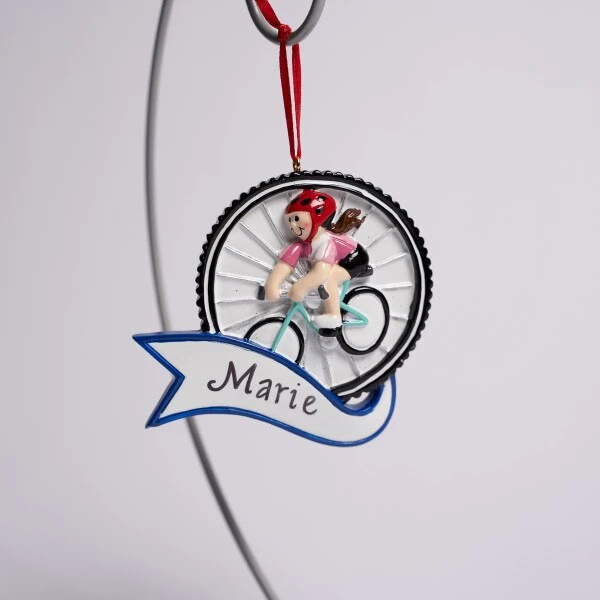 This ornament is perfect for the cyclist in your life. It can be personalized and measures 3 inches in height.