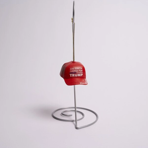 This hat ornament features the words “Don’t blame me, I voted for Trump”.