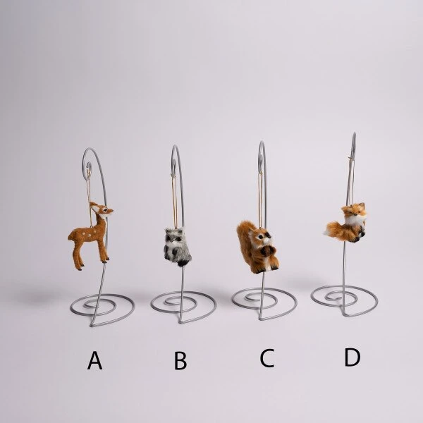 Add a nature- inspired touch to any Christmas tree with this these plush animal ornaments. This assortment of 4 includes a fox, a raccoon, a deer and a squirrel. Each sold separately and measure 3 inches in height.