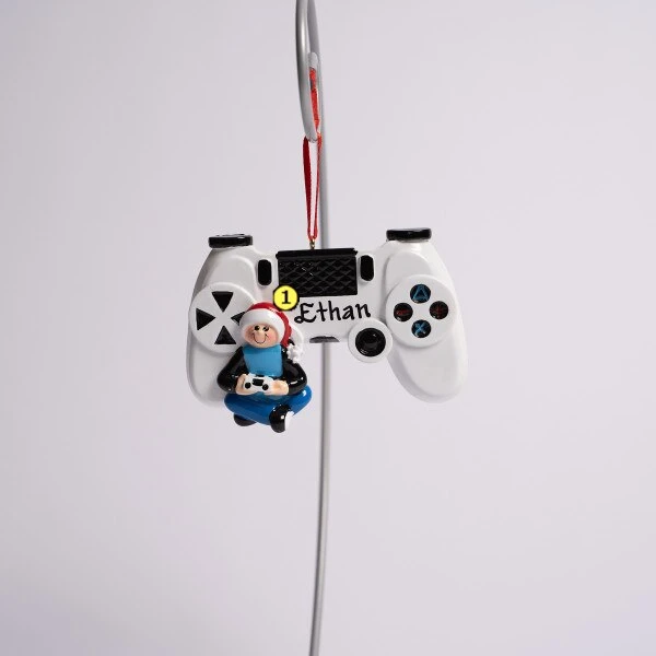 Personalizable ornament for that Gamer in the family. Come on! Everyone has one. Measures approximately 4″H x 4″W and made of quality resin. Â
