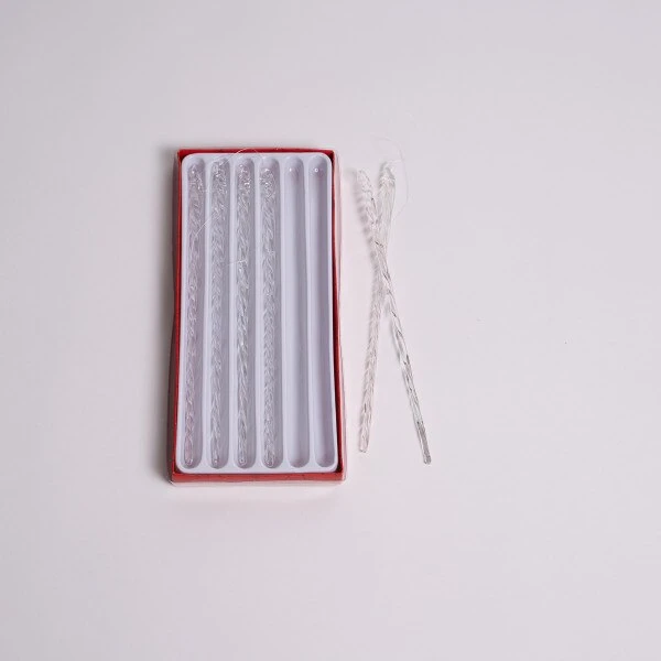 Each twisted glass ornament appears to be a dripping icicle hanging from your tree. The textured glass gives a wintry feel to any holiday decor or Christmas tree. This set of 6 measures 7.5 inches in height.