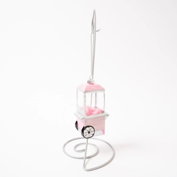 This ornament features a life like cotton candy machine with little pom pom balls to look like cotton candy inside.