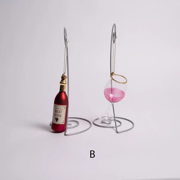 This assortment features 3 different sets of wine bottles with a glass. One is Pink Rose’, one is Red Wine, and the other is White Wine. Each sold separately and measure 4.5 inches in height.
