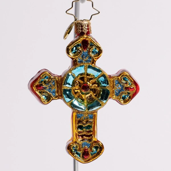 A beautifully designed cross to add to your collection, to show your faith and your life direction. This Christopher Radko glass gem ornament measures 3.125 inches in height.