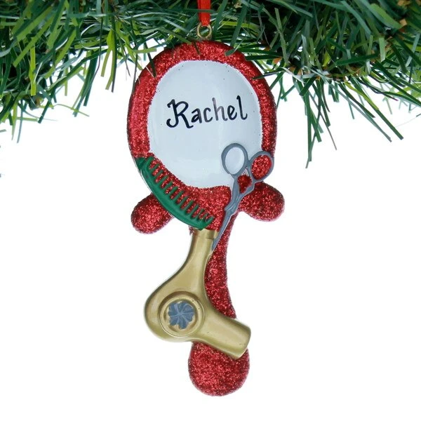 The hair stylist in your life would absolutely love this personalizable hair stylist mirror ornament! Award you stylist with a gift that can last as a special “Thank You” for the job they do! Made of quality resin and measures 4in H x .5in W x 2in L.