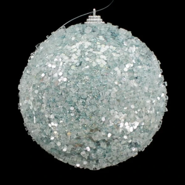 Add some sparkle and a pop of color to your snow themed Christmas tree with this 4.5 inch iced blue ball! This can be used as an ornament or holiday decor.