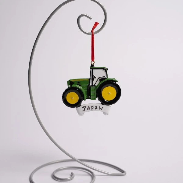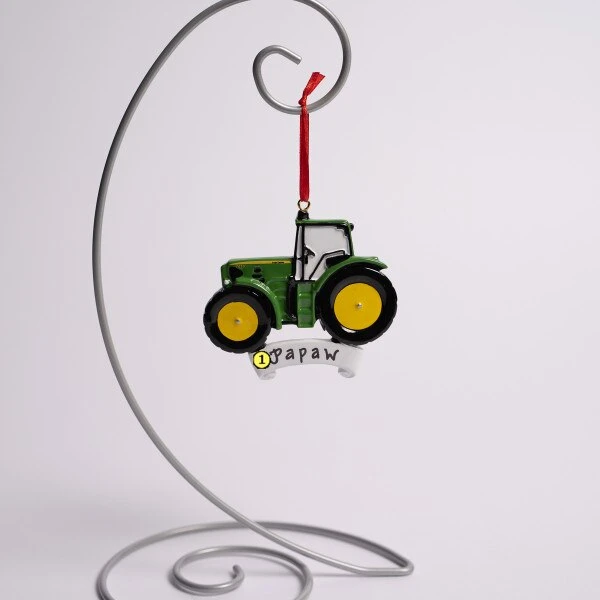 This John Deere tractor ornament can be personalized and measures 2.75 inches in height.