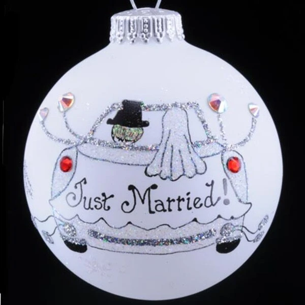 Hand painted from a design inspired by Teresa Thibault this ornament comes attractively packaged for easy gift giving., this keepsake ornament reflects the joy and love of a newlywed bride and groom. It can be personalized on the back with their names.Â