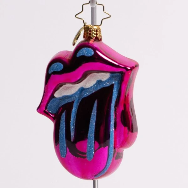 If you love the Rolling Stones then this ornament is a must have. Psychedelic neon in color is their famous logo. This Christopher Radko glass gem ornament measures 3.5 inches in height.