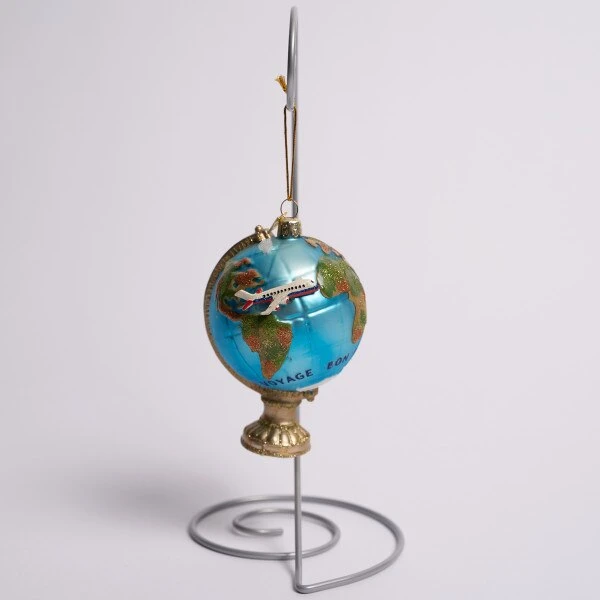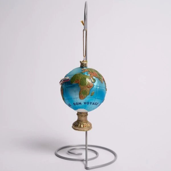 This little globe ornament is made of glass and is part of the noble gems collection. It measures 4.5 inches in height.