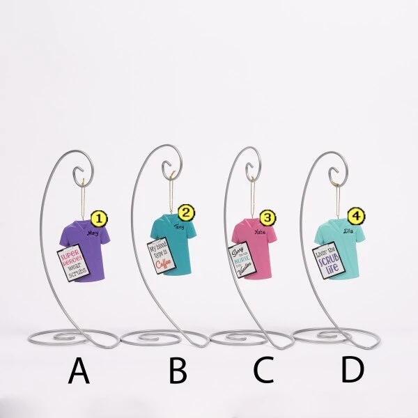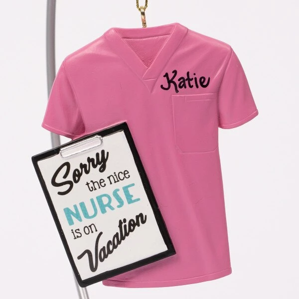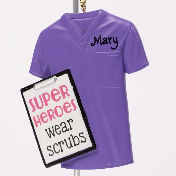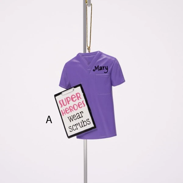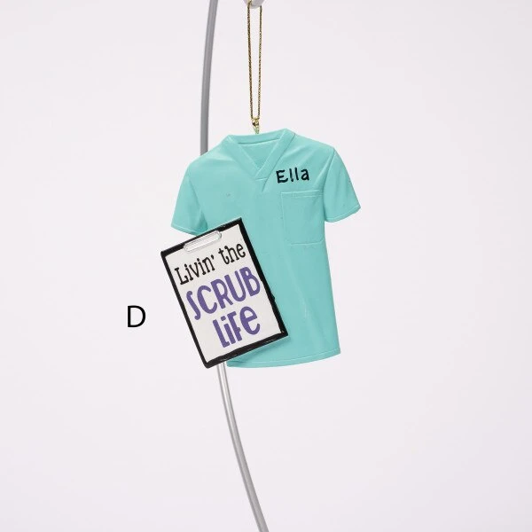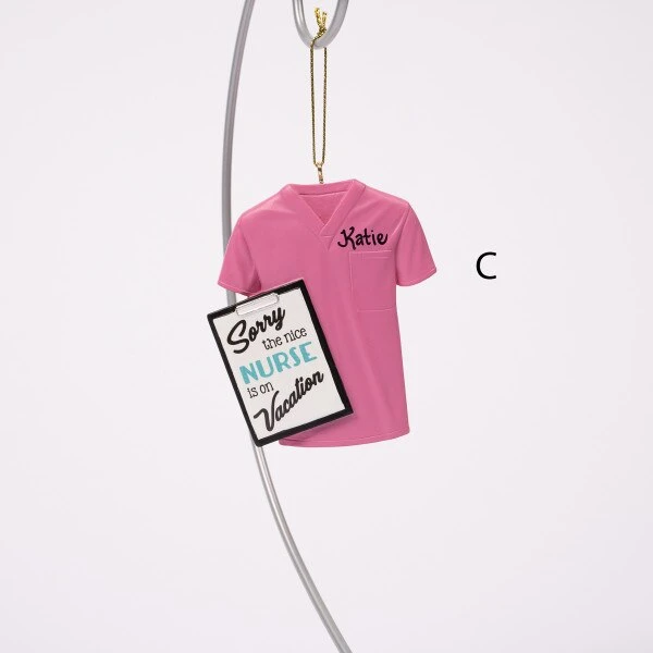 This assortment of nurse scrub ornaments feature four different colors and sayings to choose from. Each sold separately and measure 3.25 inches in height.