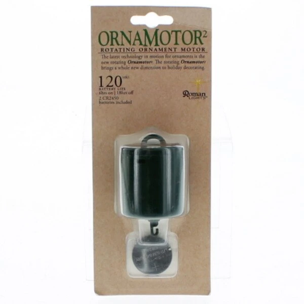 Battery operated ornament spinner. Includes 1 CR2450 lithium battery.