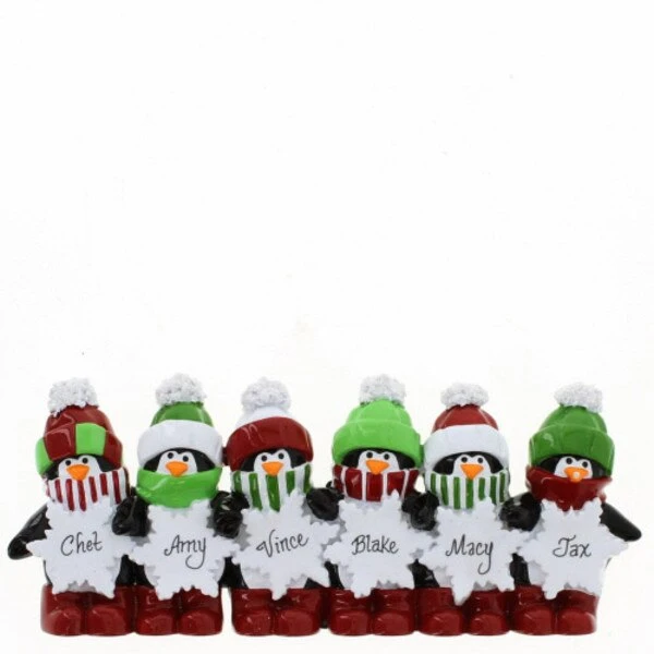 This table top item features a family of 6 penguins and can be personalized.