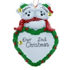 Polar Bear couple ornament can be personalized and measures 4 inches in height.Â