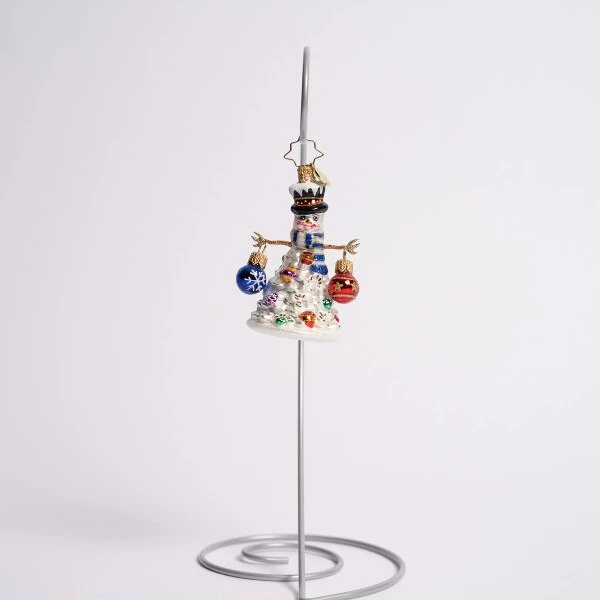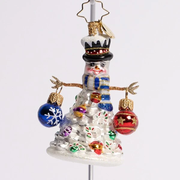 A Christmas tree? No! That’s our friend Mr. Snowman! He likes to deck himself out in ornaments for the Christmas season.
