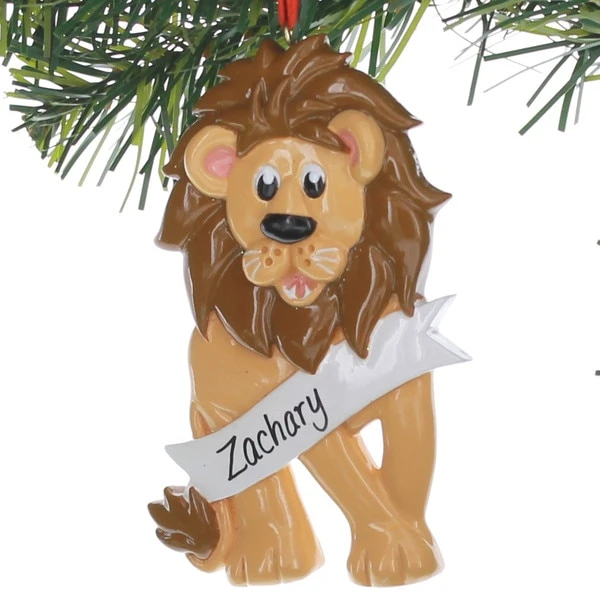 ROAR into Christmas with this loveable lion ornament! This resin ornament can be personalized and measures 2.5 x .63 x 4 inches and weighs .12 pounds.Â