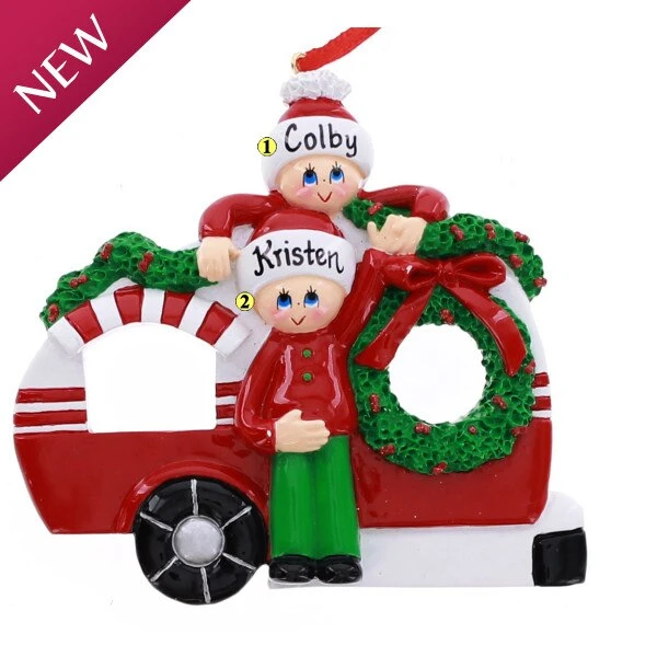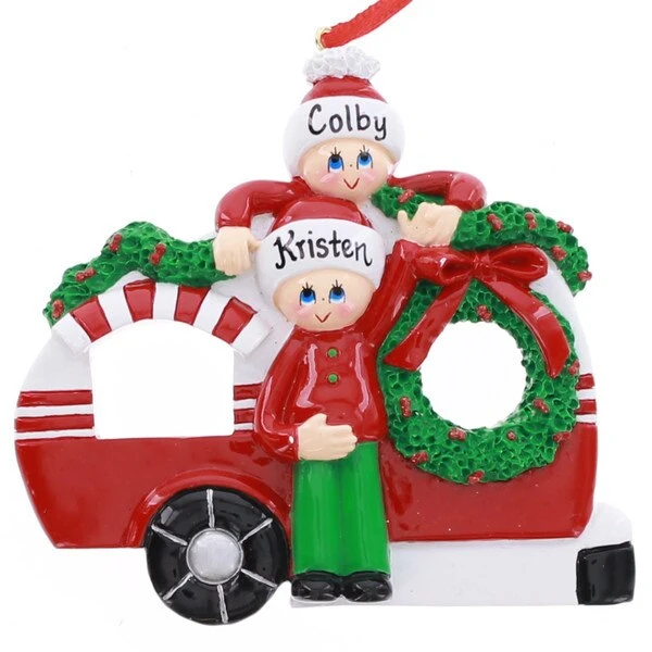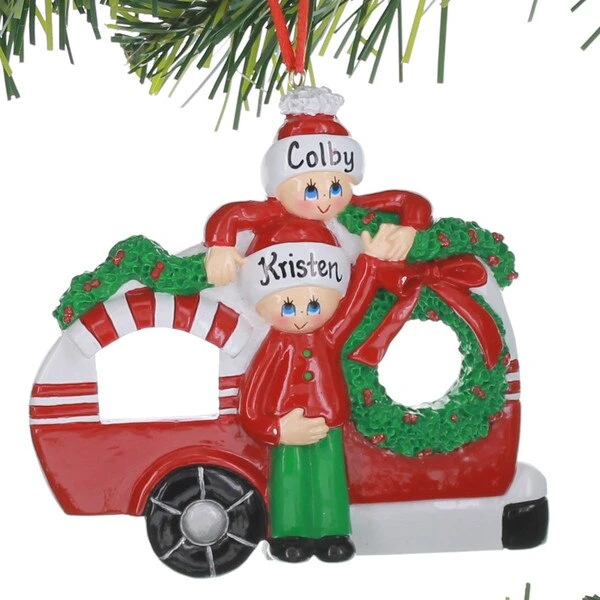 This festively decorated RVÂ can be personalized and measures 3.75 inches in height.