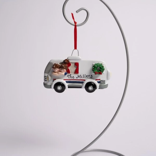 This ornament features a couple in their home on the road, their RV. It can be personalized and measures 1.875 inches in height.