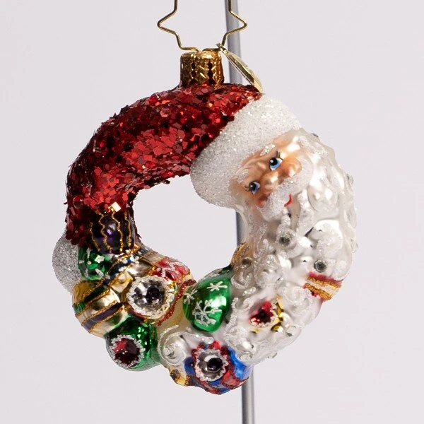 Santa comes in full circle this year with giving and getting love. This miniature wreath includes Santa himself and some small ornaments with vibrant colors. This Radko original will make your tree light up this season with the joy of Santa’s rosy cheeks.