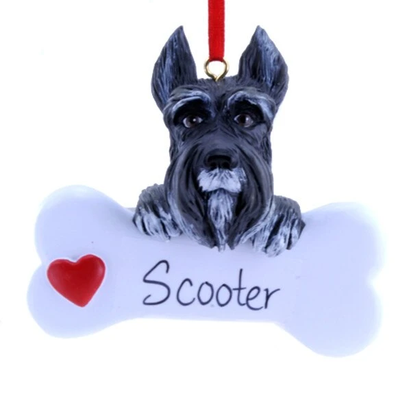 Pay tribute to man`s best friend with the cute Schnauzer Dog Ornament. This little pup is observing the Christmas festivities from over a big white bone which you can personalize with his/her name. During the season of family and friends, don`t forget to represent your beloved pet on the Christmas tree!