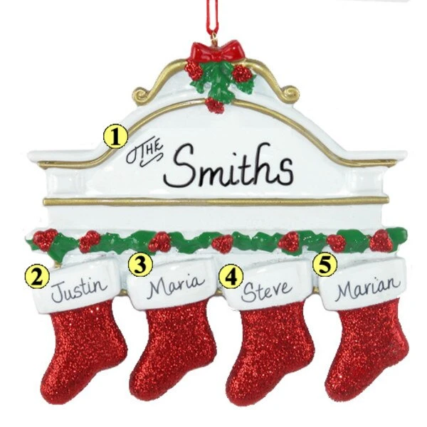 Stocking Mantel family of 4 personalizing ornament.