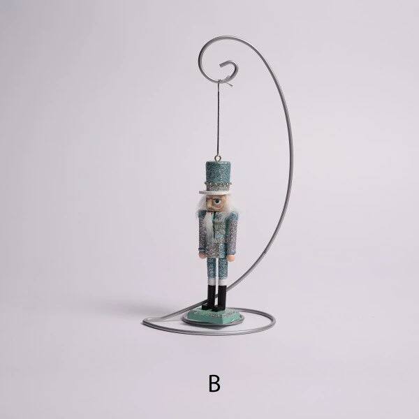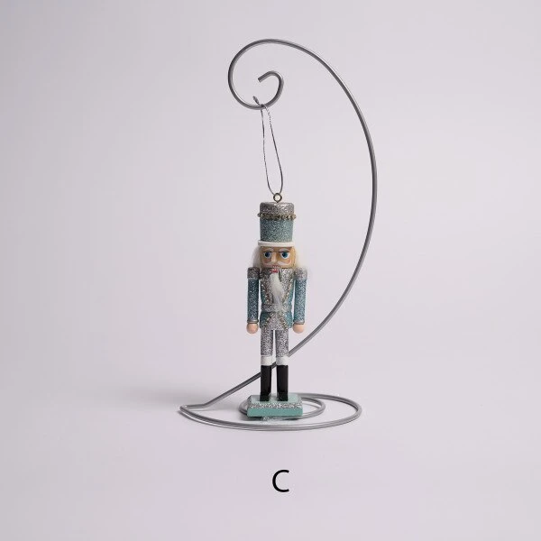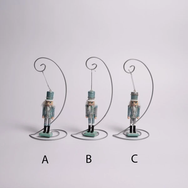 This assortment of 3 nutcracker ornaments feature teal and silver cladded soldiers standing at attention on silver glitter and teal bases. Each sold separately and measure 6 inches in height.
